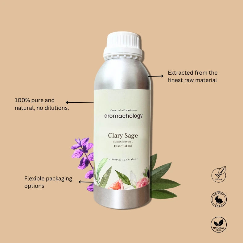 Our unbeatable prices and superior quality make Aromachology Oils the best online destination for getting essential oils for resale with customized packaging options. Buy pure essential oil of clary sage at low wholesale price and live your best life.