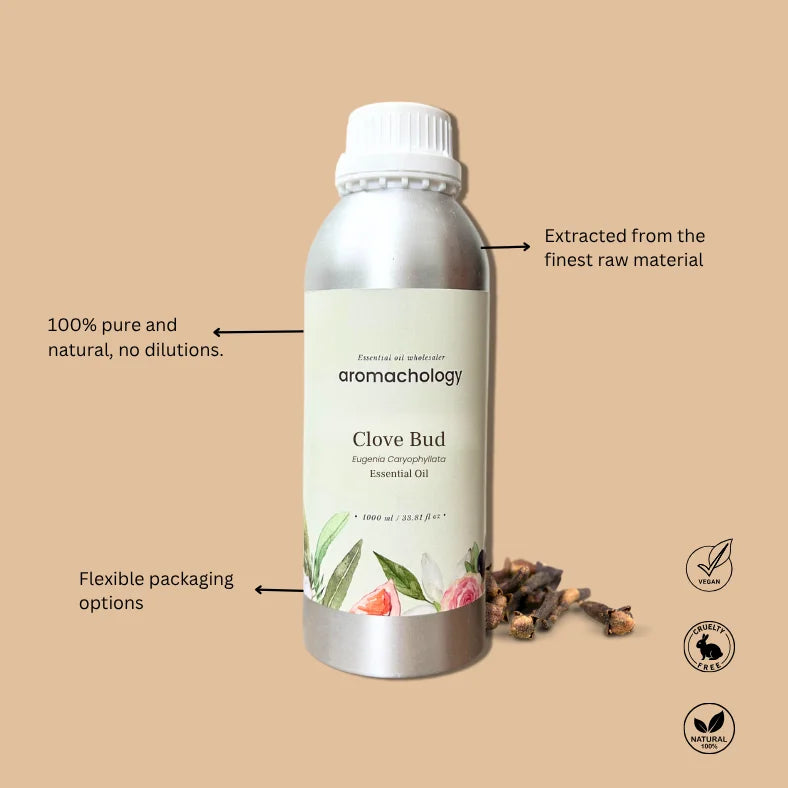 Aromachology Oils is a trusted clove essential oil wholesaler and manufacturer and has been proudly supplying over 450 natural essential oils in bulk for aromatherapy, skincare, body lotions, soaps, perfumery, nutraceutical and pharmaceutical needs. Our products have won hearts of various formulators and manufacturers in United States, France, Germany, Australia and has made us emerge as a renowned wholesale apothecary online.